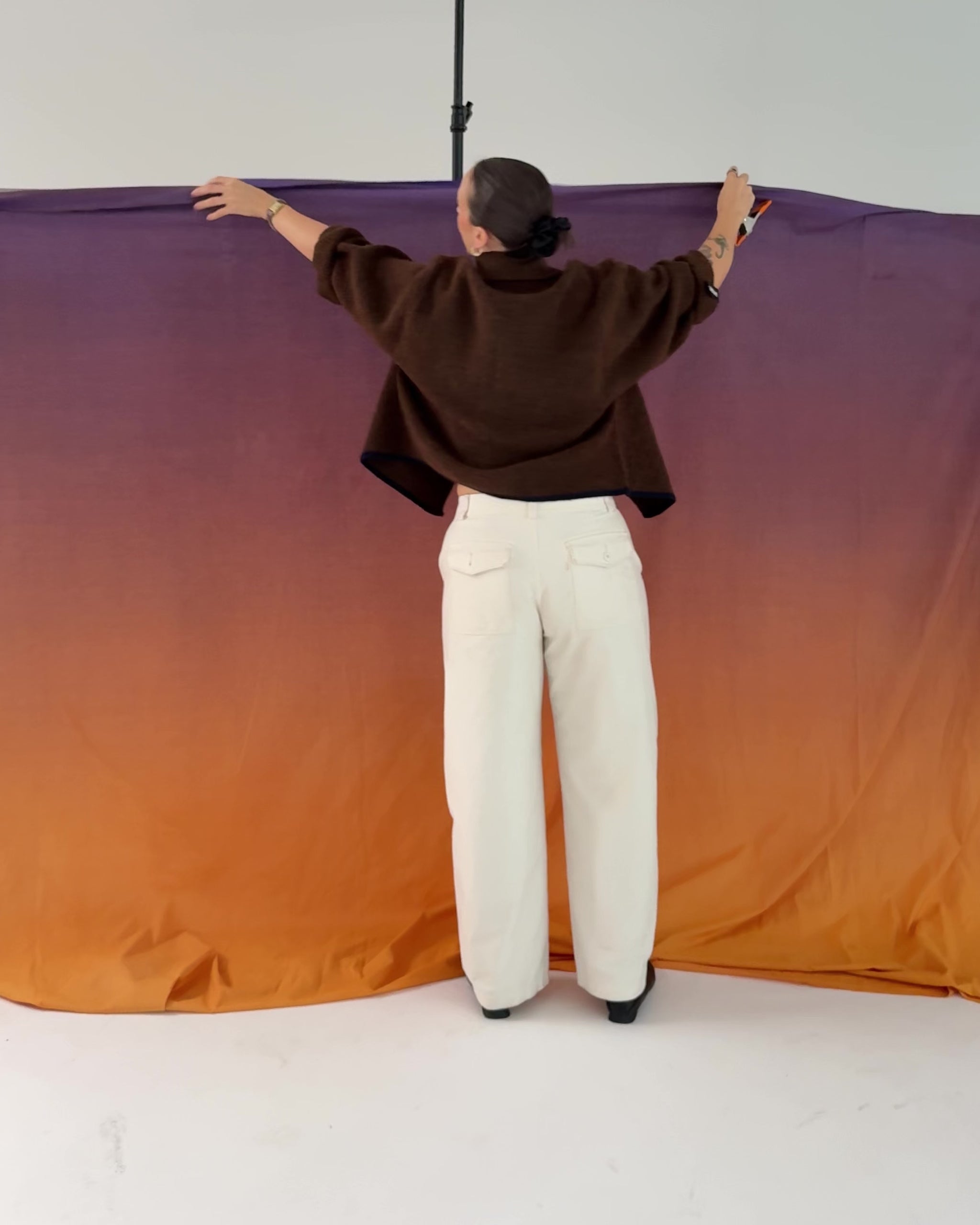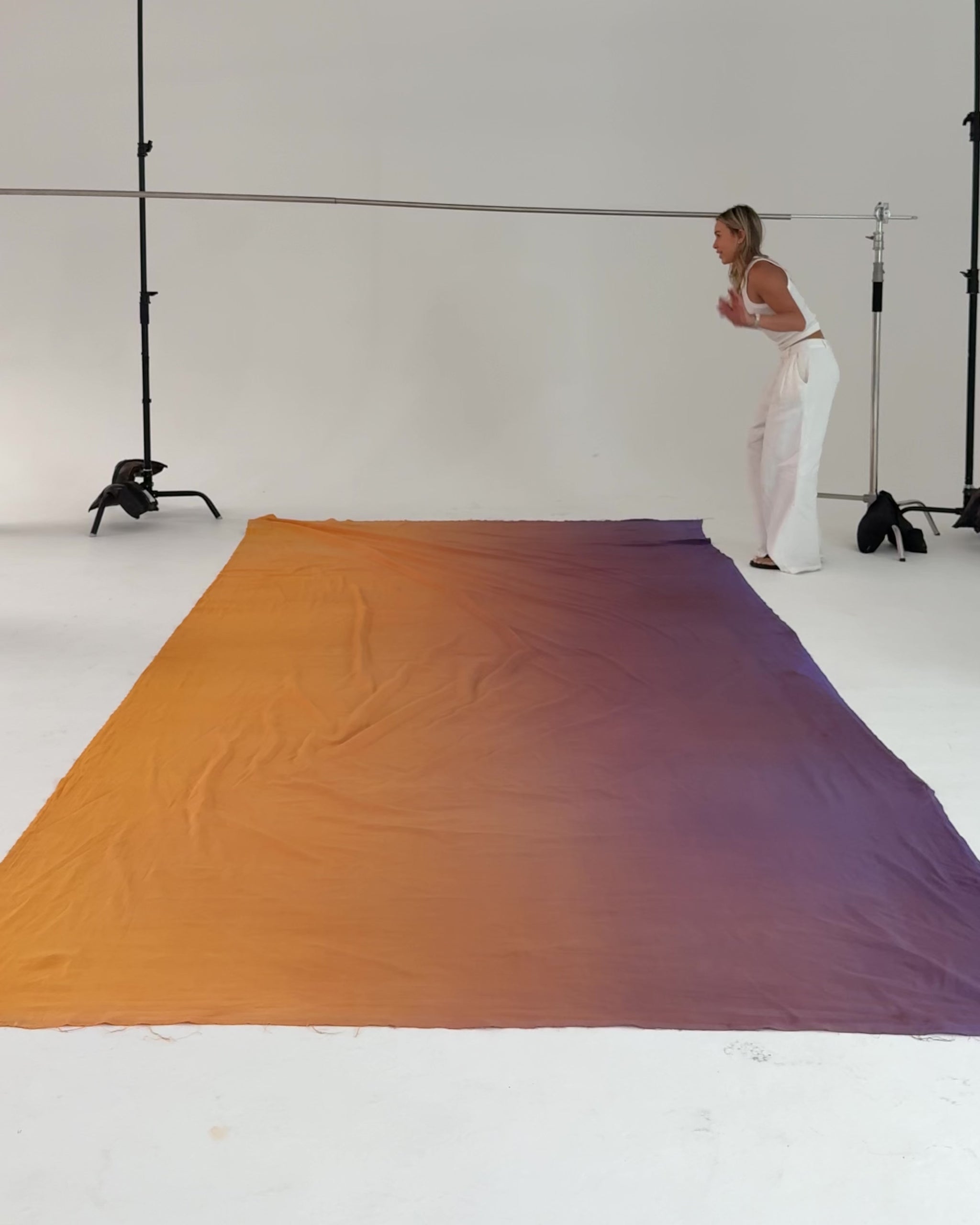Custom dyed purple to orange gradient, this fabric Backdrop was inspired by a rich sunrise.